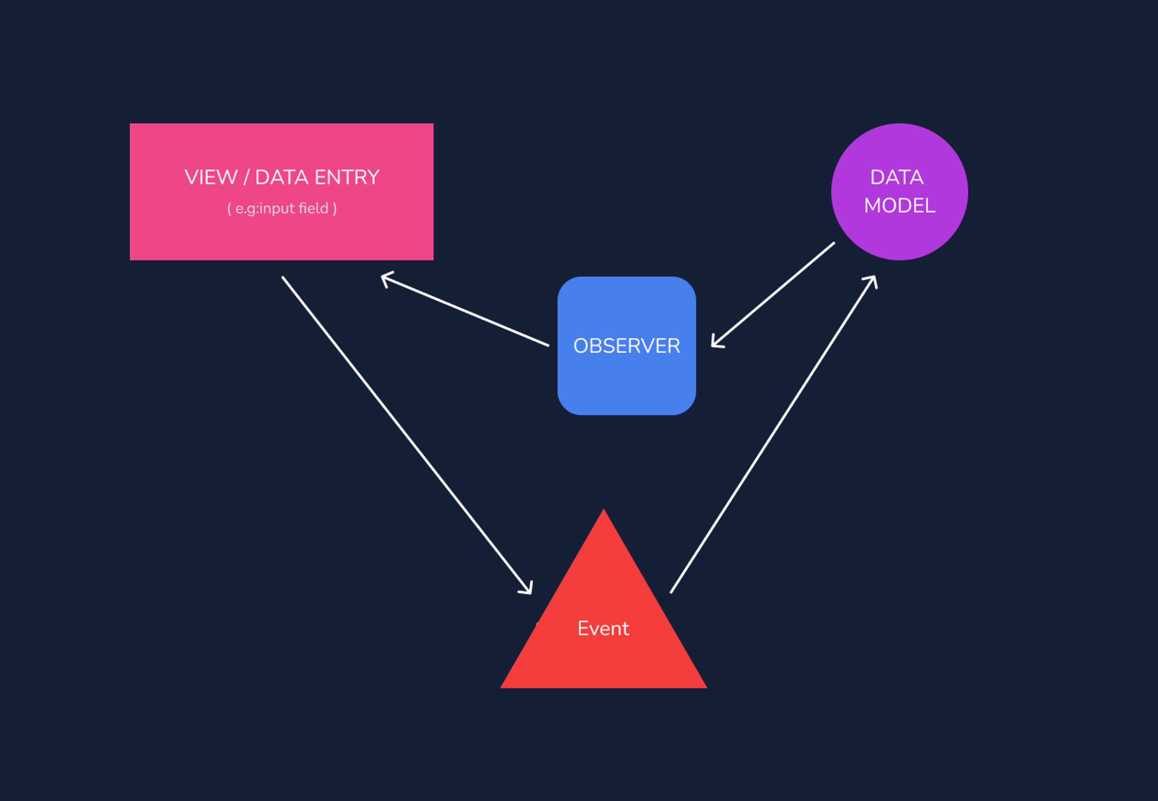any possible data changing methods or events in our data model in our case the value and we have a setter calling our observers to take action on any changes.